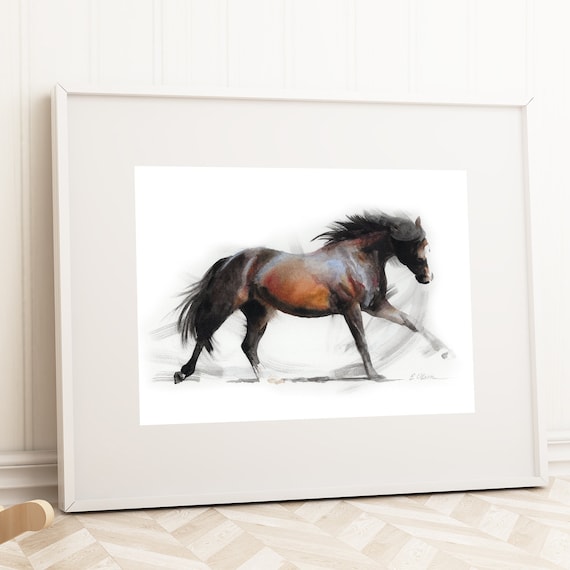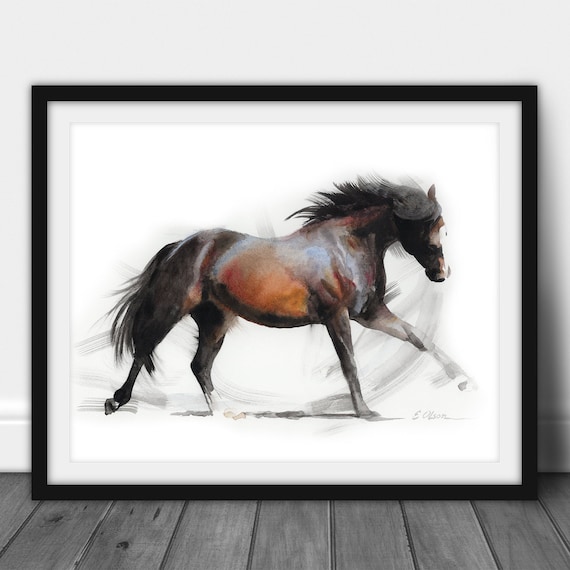 Galloping Bay Horse Print Watercolor Horse Running Horse Etsy